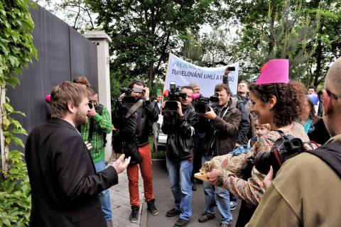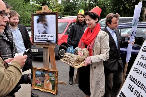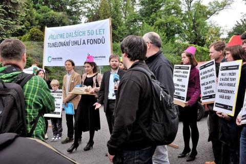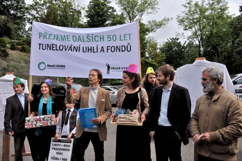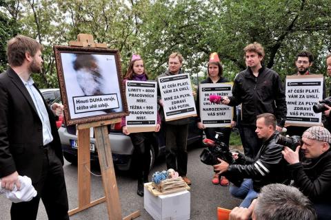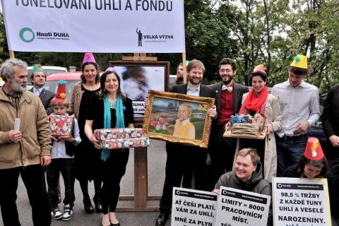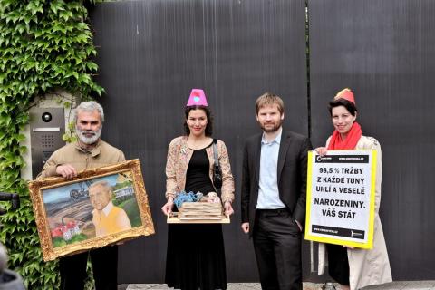 Hnutí DUHA happeningem 15. 5. 2014 před pražskou vilou uhlobarona Pavla Tykače upozornilo, že kontroverzní dnešní jubilant profituje na zcela zbytečné závislosti naší země na uhlí. Stát mu své nerostné bohatství dává téměř zadarmo nejen k narozeninám, ale každý den. Navíc přidává Tykačovi desítky miliard ročně z eráru za škody, které spalování uhlí způsobuje. Těžba a spalování uhlí jsou výhodné jen pro fosilní miliardáře, pro občany a stát jsou drasticky ztrátové.