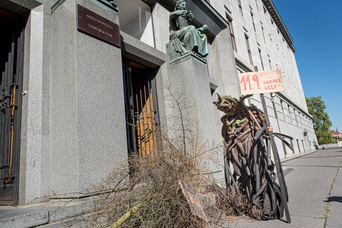 Dnes na Ministerstvu zemědělství demonstroval za záchranu lesů mýtický Ent