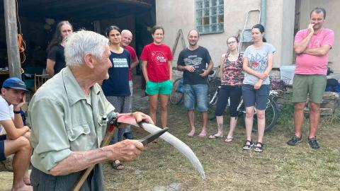 Pracovní program doplnily přednášky a exkurze. Botanickou přednášku vedl geobotanik Jindřich Prach, o činnosti Hnutí DUHA a kampaních Divočina nabeton /1/ a Zachraňme lesy /2/ hovořil Jan Skalík. Místní rodák pan Štursa zase představil umění kosení kosou a přiblížil význam bohatých lučních porostů. Skupina navštívila ekologickou rodinnou farmu pana Karmazína /3/, která se zaměřuje na chov skotu, pěstování ovoce, brambor nebo obilovin. Zájemci zde mohou celoročně zakoupit čerstvé mléko, na podzim pak i brambory a ovoce. Závěr týdne zpestřila návštěva kláštera Porta coeli v Tišnově – jediného fungujícího ženského cisterciáckého kláštera v ČR.